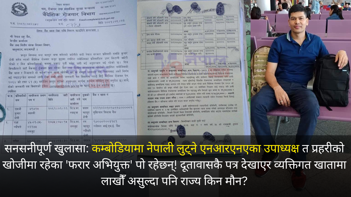 बैंकक, थाइल्याण्ड । कम्बोडियामा अलपत्र नेपालीहरूको उद्धार प्रक्रियामा भएको आर्थिक अनियमितताको विषयले नयाँ मोड लिएको छ। एनआरएनए (NRNA) कम्बोडियाका उपाध्यक्ष रामजी कुमार क्षेत्री र कोषाध्यक्ष…