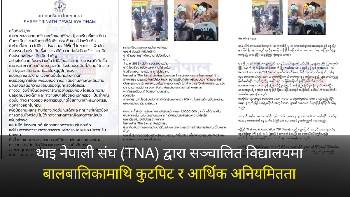 बैंकक, थाइल्याण्ड — थाइल्याण्डको राजधानी बैंककस्थित फ्रखानोङ सोइ ६ मा सञ्चालित एक नेपाली भाषा विद्यालयमा बालबालिकामाथि गम्भीर शारीरिक र मानसिक यातना दिइएको घटना सार्वजनिक भएको…