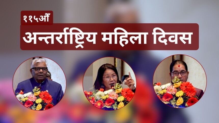 शनिबार काठमाडौंमा ११५ औं अन्तर्राष्ट्रिय महिला दिवसको अवसरमा आयोजित कार्यक्रममा उनले कानूनी रुपमा पुरुष र महिलाबीच कुनै विभेद नभए पनि वास्तविक रुपमा कार्यान्वयन हुन नसकेको भन्दै महिलाहरुको सहभागिता ३३ होईन ५० पु¥याउनुपर्ने बताए ।