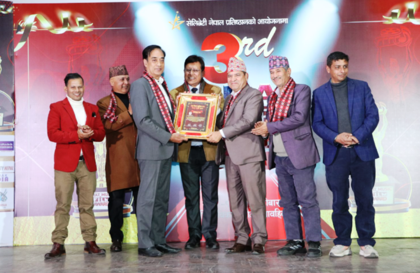 काठमाडौं । नेपाल चेम्बर अफ कमर्सका निवर्तमान अध्यक्ष एवं नेपाल निर्जीवन व्यवसायी संघका अध्यक्ष राजेन्द्र मल्ल विशिष्ट वाणिज्य सेवा पदकबाट सम्मानित भएका छन् । तेस्रो विराट म्यूजिक एण्ड फिल्म अवार्ड २०८१ को अवसरमा मल्ल सम्मानित भएका हुन् ।