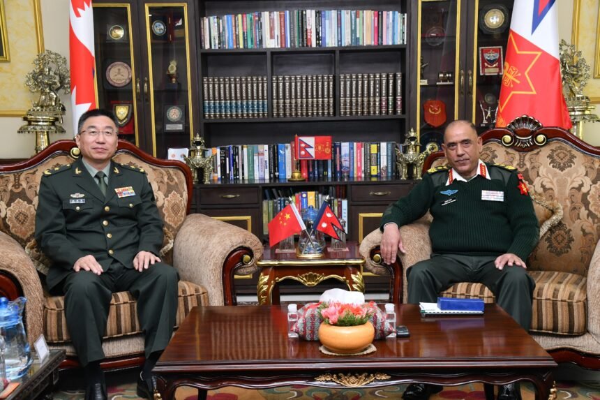 काठमाडौँ : प्रधान सेनापति प्रभुराम शर्मासँग नेपालको भ्रमणमा रहनुभएका चिनियाँ जनमुक्ति सेनाका उपप्रमुख मेजर जनरल झाङ पाकुनले जङ्गी अड्डामा शिष्टाचार भेट गर्नुभएको छ ।