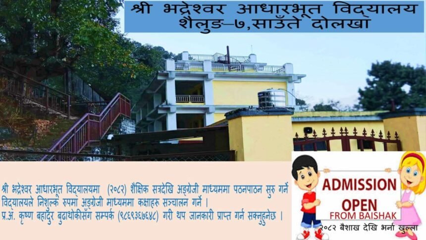 शैलुंग, दोलखा – दोलखाको शैलुंग-७, साउतेस्थित श्री भद्रेश्वर आधारभूत विद्यालय आगामी 2082 शैक्षिक सत्रदेखि अंग्रेजी माध्यममा अध्ययन–अध्यापन सुरु गर्न लागिरहेको छ। विद्यालयले निःशुल्क रूपमा अंग्रेजी माध्यम कक्षाहरू सञ्चालन गर्ने निर्णय गरेको छ, जसले स्थानीय विद्यार्थीहरूलाई गुणस्तरीय शिक्षा प्रदान गर्न सहयोग पुग्नेछ।
