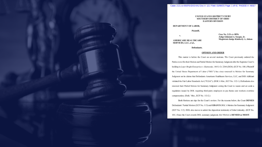 अदालतले Americare लाई “companionship” र “live-in caregiver” अपवाद अन्तर्गत ओभरटाइम तलब नतिर्ने छुट नभएको ठहर गरेको छ। अदालतले २०१३ मा श्रम विभागद्वारा जारी गरिएको नियम अनुरूप Americare जस्ता तेस्रो-पक्षीय हेरचाह कम्पनीहरूले यस्तो छुट पाउन नसक्ने निर्णय सुनाएको हो।
