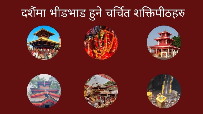 काठमाडौं । चाडपर्वको समयमा हिन्दुहरु मन्दिरमा पुगेर दर्शन गर्न र पूजाआजा गर्न अनिवार्य ठान्छन् । धार्मिक स्थलहरूमा पुगेर दर्शन गर्ने अनि घुमेर रमाइलो गर्नेहरू पनि प्रशस्त भेटिन्छन् । विशेषगरी वडादशैंका बेला यस्ता मन्दिरहरुमा झनै भीडभाड बढ्ने गरेको पाइन्छ । नेपालमा यस्ता चर्चित शक्तिपीठहरू छन्, जहाँ विजयादशमीका बेला हर्षोल्लासका साथ पूजाआजा चल्ने गर्छ ।