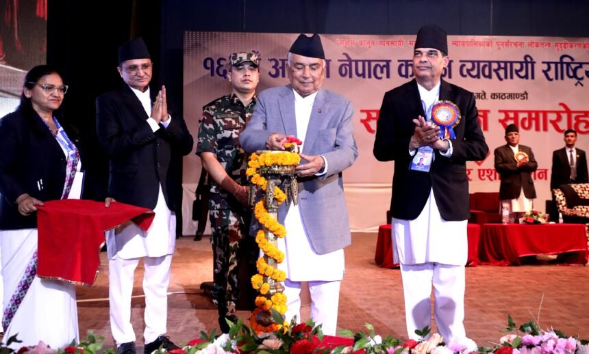 काठमाडौँ : राष्ट्रपति रामचन्द्र पौडेलले १६औं अखिल नेपाल कानुन व्यवसायी राष्ट्रिय सम्मेलनको उद्घाटन गर्नुभएको छ । ‘सक्षम कानुन व्यवसायी, मर्यादित बारः न्यायापालिकाको पुनःसंरचना लोकतन्त्र सुदृढीकरणको आधार’ भन्ने नाराका साथ नेपाल प्रज्ञा-प्रतिष्ठान काठमाडौँमा आजदेखि सुरू भएको तीनदिने सम्मेलनको राष्ट्रपति पौडेलले उद्घाटन गर्नुभएको हो ।