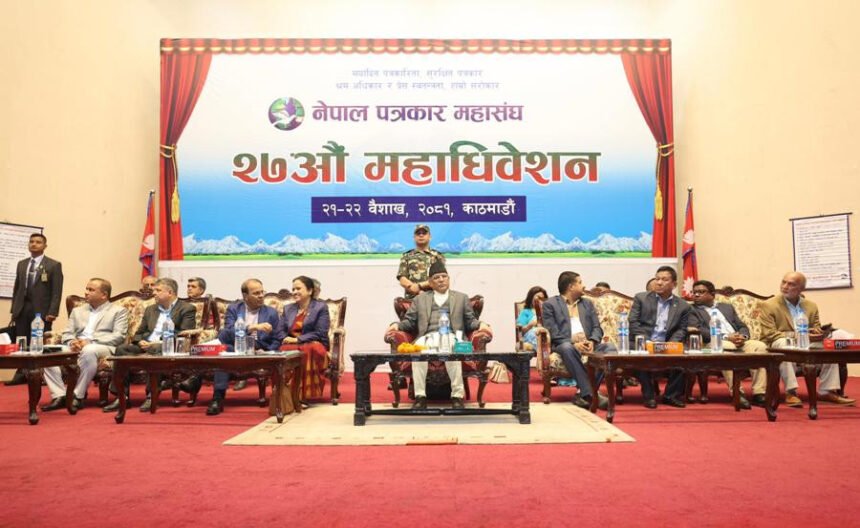 नेपाल पत्रकार महासंघको २७ औं महाधिवेशन संविधानको पूर्ण कार्यान्वयन, पूर्ण प्रेस स्वतन्त्रता, श्रमजीवी पत्रकार ऐनको कार्यान्वयन, पत्रकारिताको संस्थागत विकास र समृद्धिका लागि तपसिल बमोजिमको घोषणापत्र जारी गर्दछ :