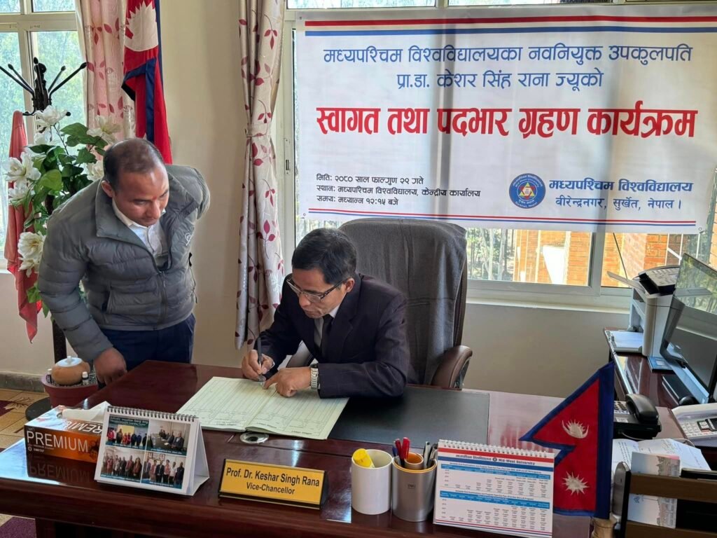 आज वीरेन्द्रनगर सुर्खेत स्थित केन्द्रीय कार्यालयमा पदभार ग्रहण गर्दै रानाले विश्वविद्यालयको हितमा काम गर्ने प्रतिवद्धता जनाउनुभएको हो ।