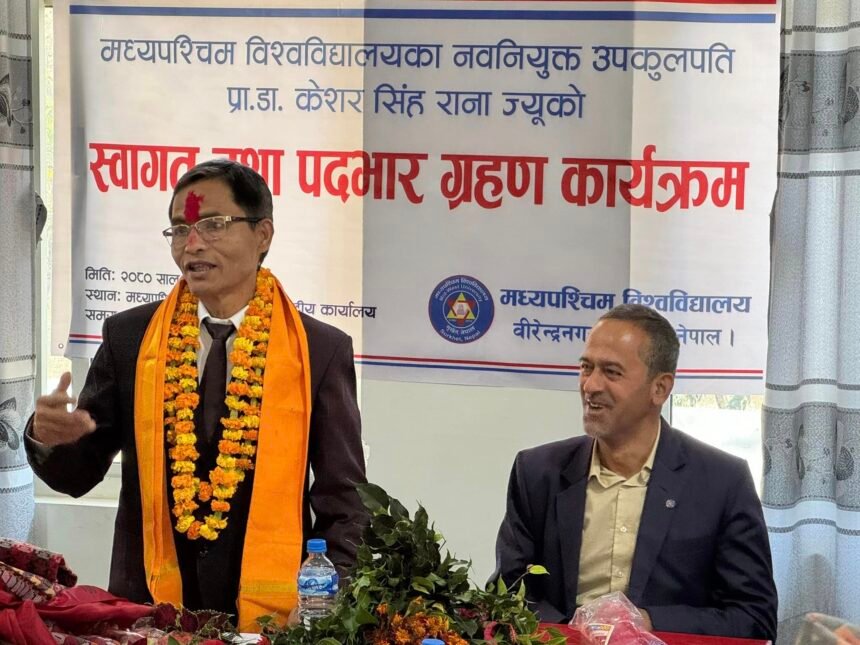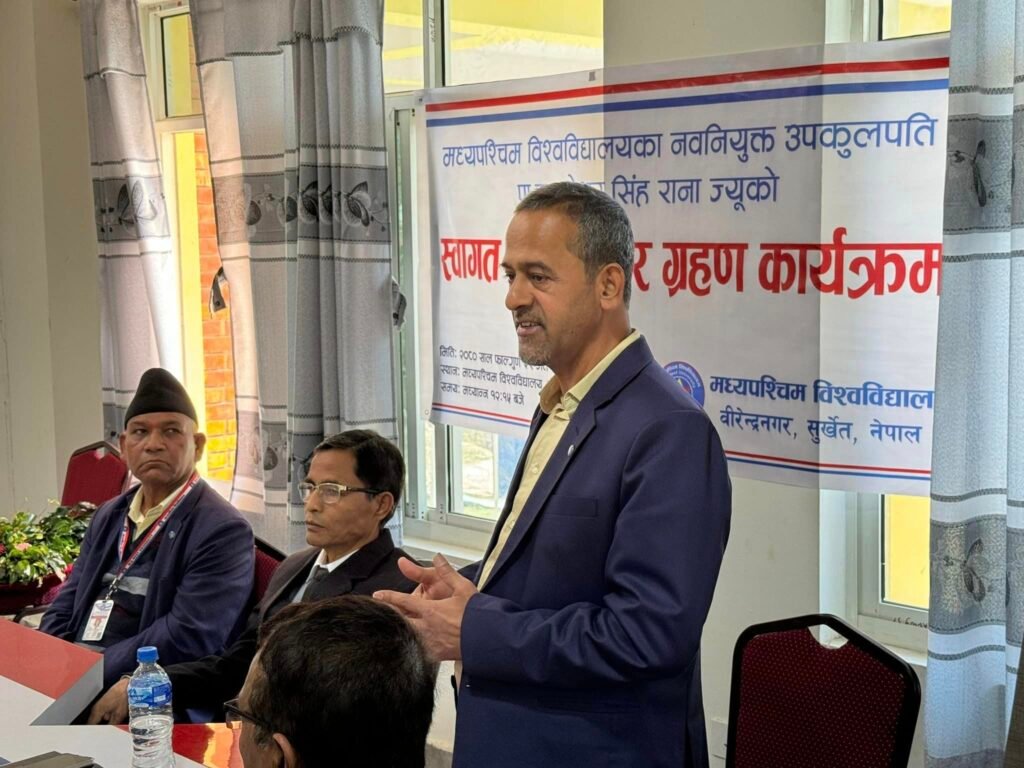 सुर्खेत । मध्यपश्चिम विश्वविद्यालयका नवनियुक्त उपकुलपति प्राडा केशर सिंह रानाले सरोकारवाला सबैलाई साथमा लिएर विश्वविद्यालयको हितमा काम गर्ने बताउनुभएको छ ।