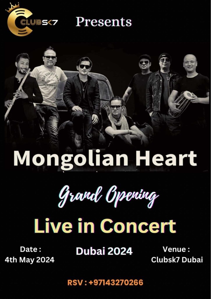 युएईस्थित बरदुबईमा करिब २५ करोडको लगानीमा नेपालीले खोलेको नाइट क्लबको उद्घाटनको अवसरमा मंगोलियन हार्टले कन्सर्ट गर्ने भएको हो ।