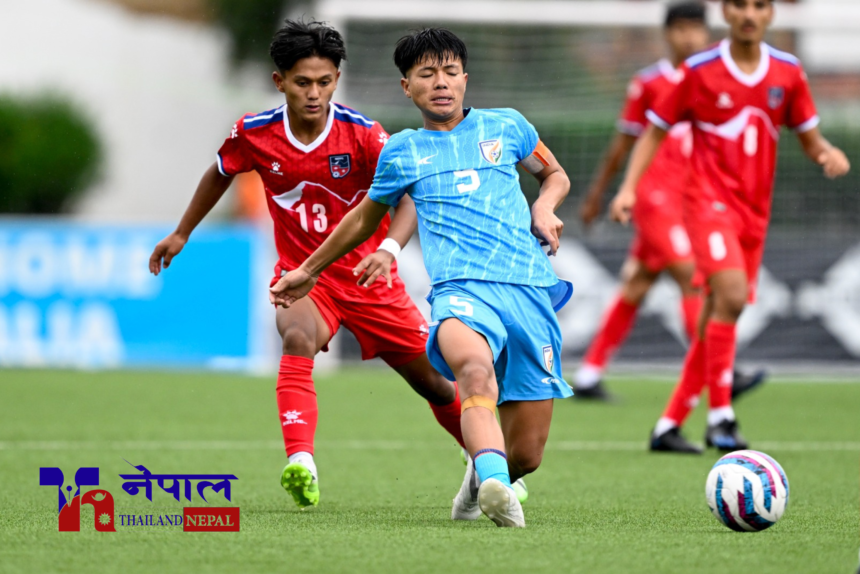 दायाँतर्फबाट आएको क्रसमा भारतका सुमित शर्माले हेडर गरेका थिए । नेपाली गोलरक्षक पेम्बा नोर्वुले बल बचाउन सफल भए पनि सम्हाल्न सकेनन् र भिजल यादवले गोलरक्षकको खुट्टाबीचबाट बललाई गोलपोष्टमा पठाए ।