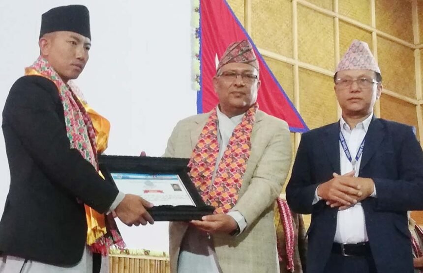 मुख्य निर्वाचन अधिकृत केशवप्रसाद घिमिरेले नेम्वाङलाई मंगलबार निर्वाचित भएको प्रमाणपत्र प्रदान गर्नुभएको हो।