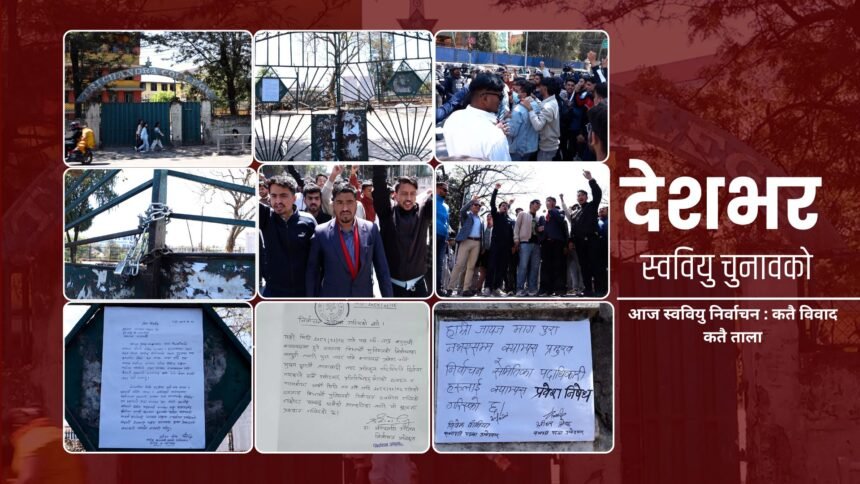 मंगलबार हुने स्ववियु निर्वाचनको सम्पूर्ण तयारी पूरा भएपनि क्याम्पस प्रवेश गर्ने मुख्यद्वारमै तालाबन्दी भएकाले निर्वाचन स्थगित गरिएको हो ।
