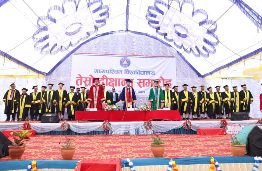 सुर्खेत । प्रधानमन्त्री एवं कुलपति केपी शर्मा ओलीबाट मध्यपश्चिम विश्वविद्यालयको तेस्रो दीक्षान्त समारोहका अवसरमा शुक्रबार विभिन्न तह र संकायका तीन हजार आठ सय ४१ विद्यार्थी दीक्षित भएका छन् ।