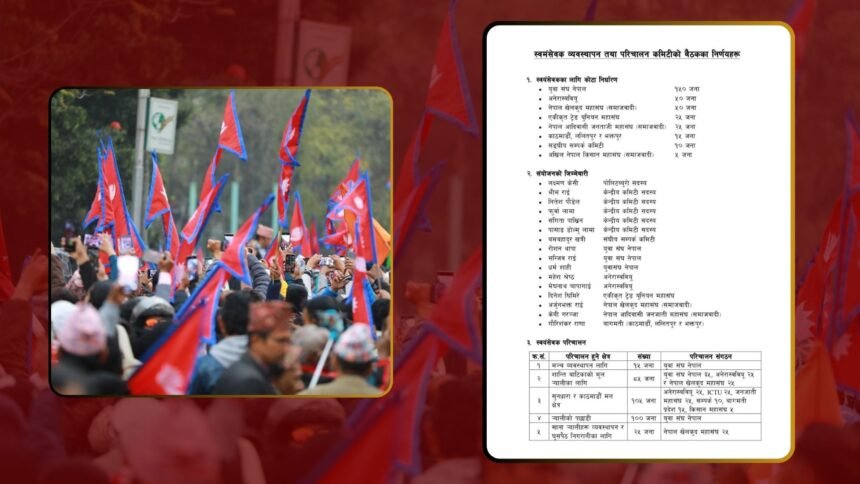 यसैगरी स्वयंसेवक व्यवस्थापन तथा परिचालन कमिटीले पनि कुनै अप्रिय घटना नघटनाका लागि स्वयंसेवक परिचालन गर्ने निर्णय गरेको छ । यसक्रममा, विभिन्न संघसंस्थाहरूका स्वयंसेवकहरूलाई परिचालन गर्ने व्यवस्था मिलाइएको छ । यी स्वयंसेवकहरूको मुख्य जिम्मेवारी प्रदर्शनका दौरान मञ्च व्यवस्थापन, र्यालीका लागि क्षेत्र निर्धारण र घुसपैठ निगरानी जस्ता कार्यहरूमा केन्द्रित रहने छ ।
