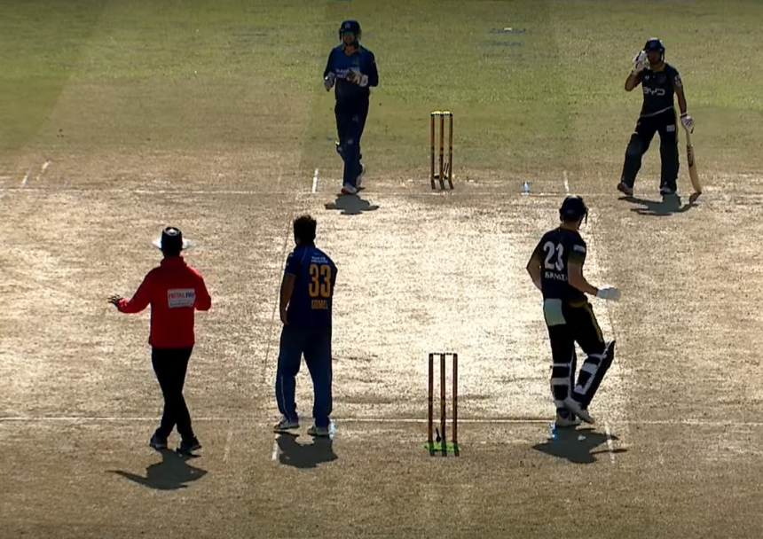 दिलिप नाथ २७ र कप्तान कुशल भुर्तेल ७ रनमा आउट भए । काठमाडौंका लागि कप्तान करण केसी र रसिद खानले समान ३–३ विकेट लिए । गेरहार्ड इरास्मसले एक विकेट लिन सफल भए ।